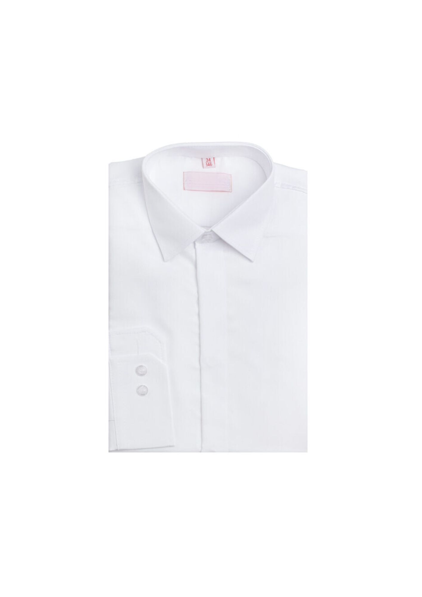 Koszula chłopięca biała typu oxford z krytą plisą. Kołnierz klasyczny, sylwetka dopasowana.