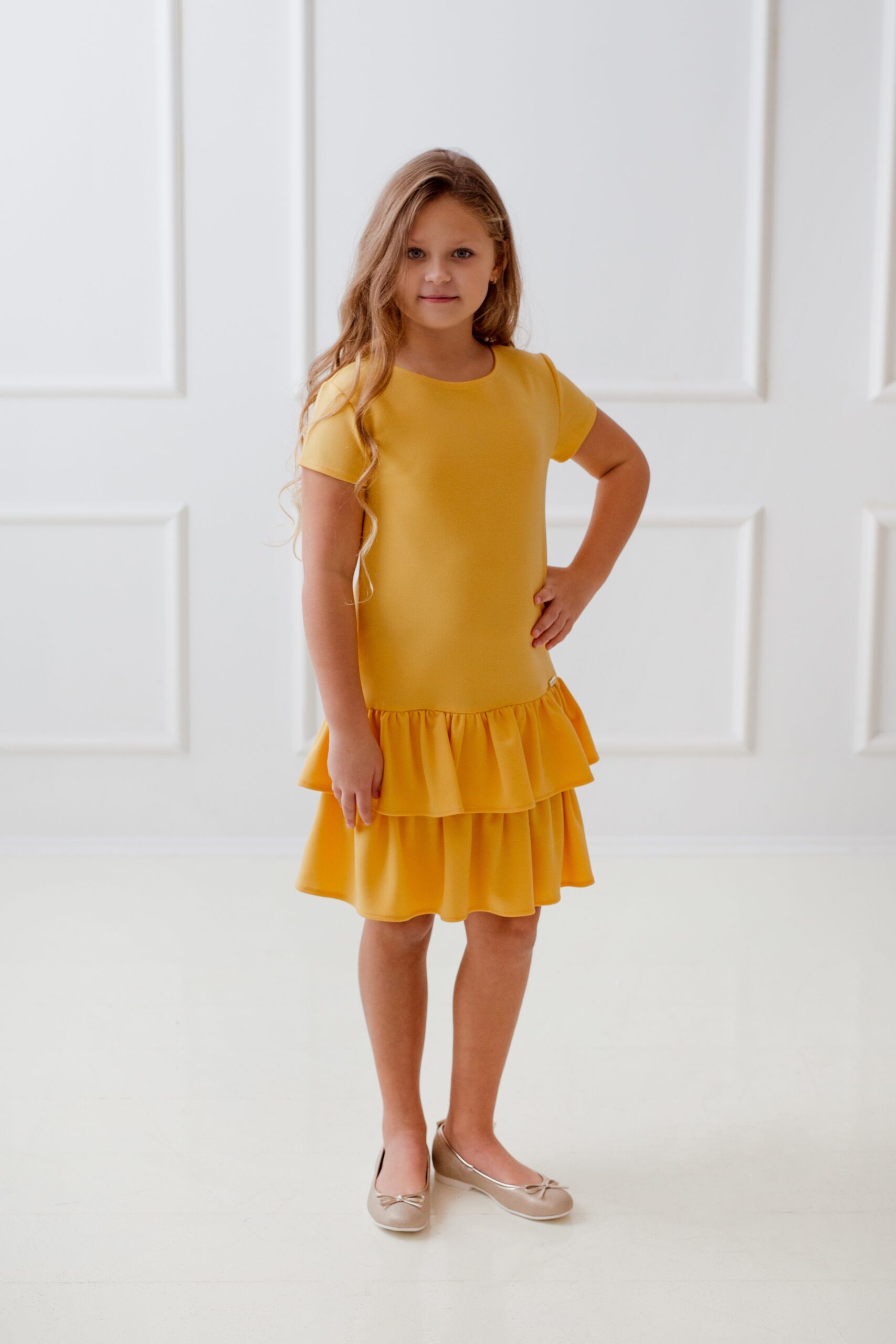 Sukienka wizytowa dla dziewczynki z dzianiny. Idealna na przebranie, na wesele lub inną uroczystość.